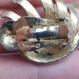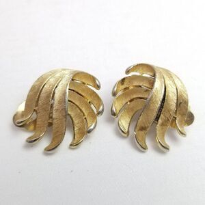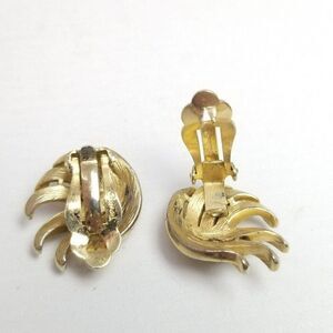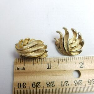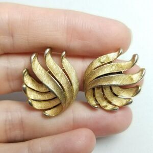 Vintage Crown Trifari Gold Tone Wave Shape Clip On Earrings, Retro Estate Signed