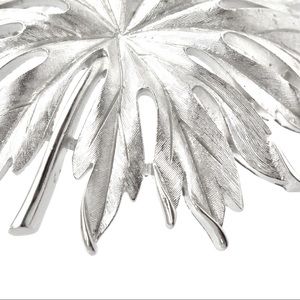 Vintage Crown Trifari Leaf Brooch Textured Silver Rhodium Plated Large Realistic