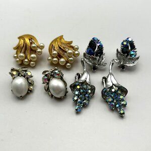 Vintage Crown Trifari Lisner Coro Lot of 4 Pairs Designer Clip On Earrings