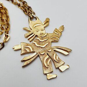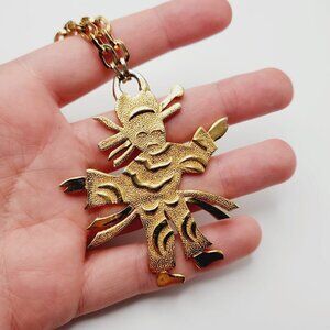 Vintage Crown Trifari Ming Collection Asian Dancer Figure Gold Tone Necklace