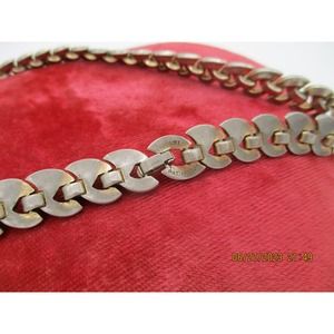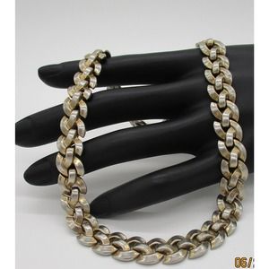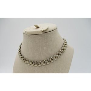 Vintage Crown Trifari pretzel link chain necklace. 15" long. .375" thick. Has pretty good weight to it. Some tarnishing of the silvertone due to age and prior use but overall in great vintage condition.