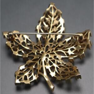 Vintage Crown Trifari Rhinestone Maple Leaf Brooch Pin