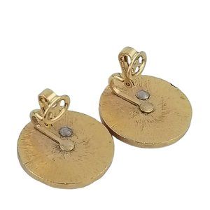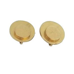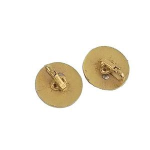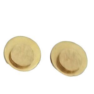 Vintage Crown Trifari Signed Brushed Gold Tone Button Clip on Earring Studs W12