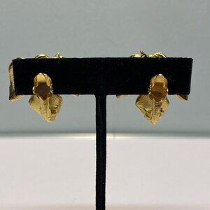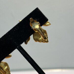 These vintage Trifari earrings exude timeless elegance with their intricate leaf design and gold-tone finish. A sophisticated accessory for a classic touch.