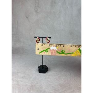 Crown Trifari Stud 1” Pierced Drop Earrings Gold Tone Red Enamel Vintage Signed