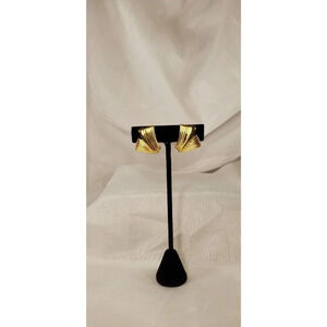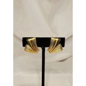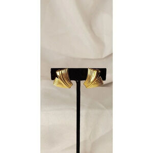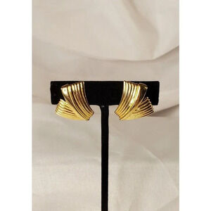 VINTAGE CROWN TRIFARI TEXTURED GOLD TONE FOLDED CLIP EARRINGS