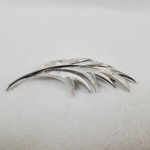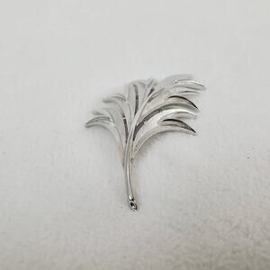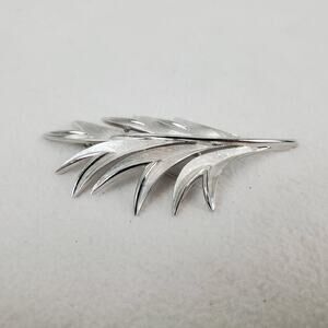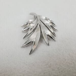 Vintage Crown Trifari Textured Silver Tone Swirl Feather Leaf Pin Brooch