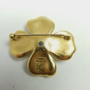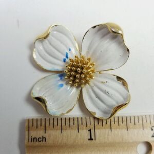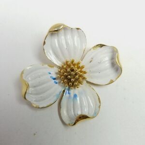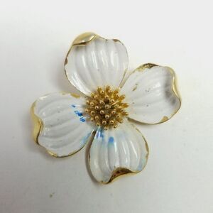 Vintage Crown Trifari White Enamel and Gold Tone Flower Brooch, Signed Stained