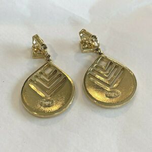 Vintage Crown Trifari clip on earrings gold tone drop & dangle mod 1980's chic