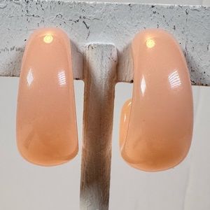 Vintage Crown Trifari light pink lucite oval hoop clip on earrings