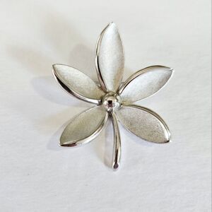 Vintage Crown Trifari Alfred Philippe Brushed Silver Tone Floral Daisey Brooch Pin