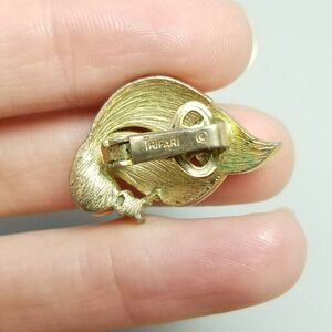 Vintage Crown Trifari Gold Tone Faux Pearl Clip On Earrings Retro Estate, Signed