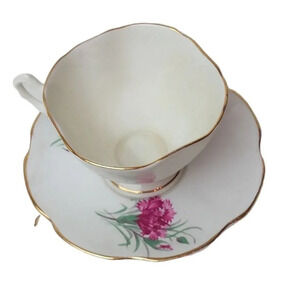 Vintage Crownford Bone China England Carnations Floral Tea Cup and Saucer