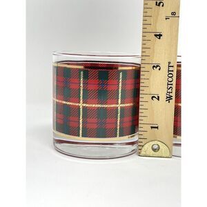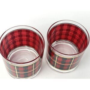 Vintage Crowning Touch Red Green Scottish Tartan Plaid Lowball Glasses Set Of 2