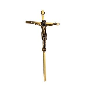 A vintage crucifix, a profound symbol of faith and devotion. This piece features a detailed depiction of Jesus Christ, mounted on a traditional cross with the inscription "INRI" at the top. The bronze tone finish adds a touch of antique elegance, making it a meaningful addition to any home. Perfect for a quiet space of reflection, a church setting, or as a thoughtful gift for a religious occasion.