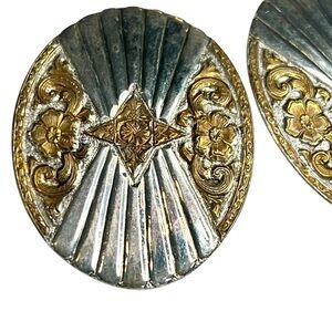 Vintage Crumrine 90s Gold Silver Western Style Large Pierced Earrings