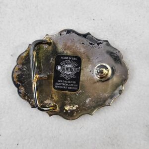 This vintage Crumrine belt buckle features a stunning design of wild horses in Reno, Nevada. The heavy silver on jewelers bronze adds a touch of elegance to this unique piece, making it a great addition to any collection. The buckle was made in the United States and represents Western Americana culture. It is perfect for collectors or those who appreciate the beauty of vintage belt buckles.