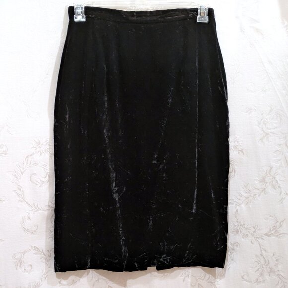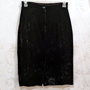 Vintage Crushed Velvet Pencil Skirt 14 Black Elegant Gothic Holiday Party Formal