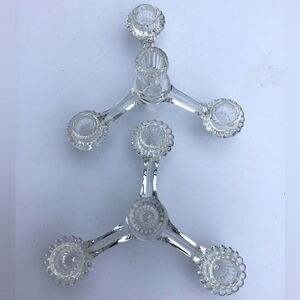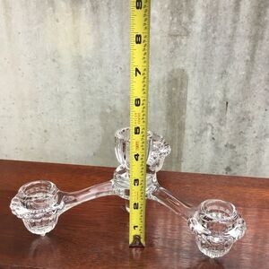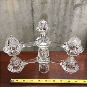 Vintage Crystal Glass 3 Arm Four Candle Candelabra Holder