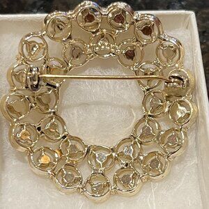 Vintage Crystal Beaded Round Wreath Brooch Pin by DODDS
