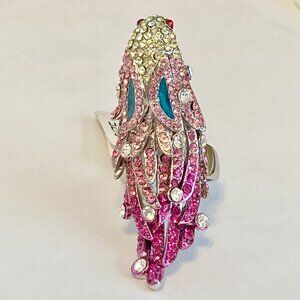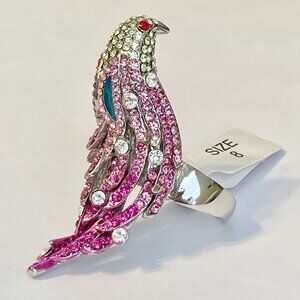 Vintage Crystal Bird Cocktail Ring Statement Size 8 Pink Silver Rhodium Plated