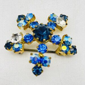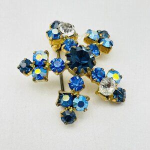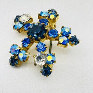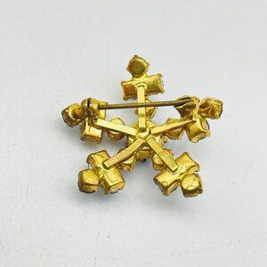 Vintage Crystal Blue Snowflake Pin Gold Tone Star Classic Career Cosplay LARP