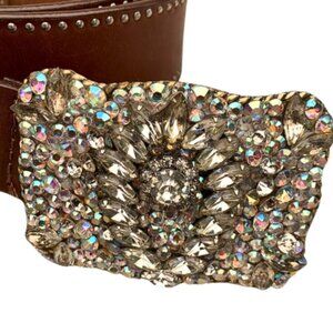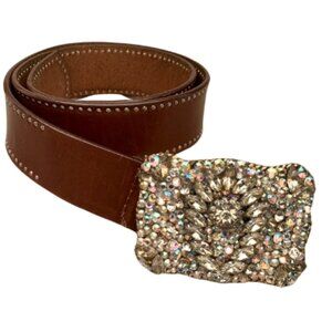 Gorgeous handmade OOAK all vintage crystal belt buckle on leather belt. Backside of the buckle is stamped circa 1995. I acquired this in early 2000's from an antique dealer in Los Angeles. Excellent condition - worn several times. All crystals are intact.