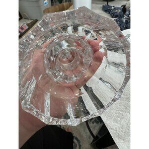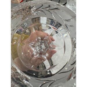 Vintage Crystal Candle Holders With Engraved Floral Design heavy votive set