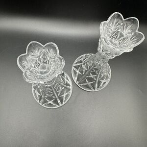 Vintage Crystal Candlestick Holders Pair 8" Clear Heavy 24% Lead Glass USA EUC