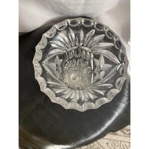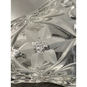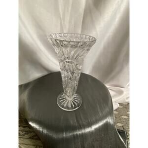 Vintage Crystal Clear Glass Vase with Etched Flower 8 in tall EUC