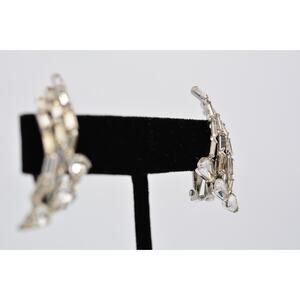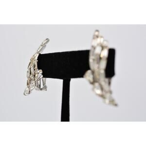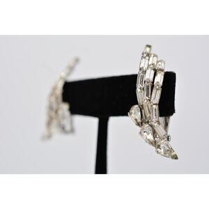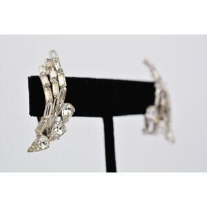 Vintage Crystal Clip Earrings Baguette Rhinestone Marquise Prong 1980s BinAV