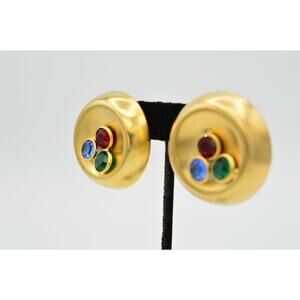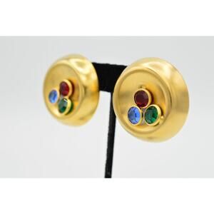 Vintage Crystal Clip Earrings Brushed Gold Rhinestone Chunky USA Signed NOS A21