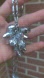 gorgeous vintage 26-in silver tone necklace with spring ring clasp and a large 2.75 in heavy genuine light gray crystal cluster pendant that resembles grapes?