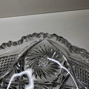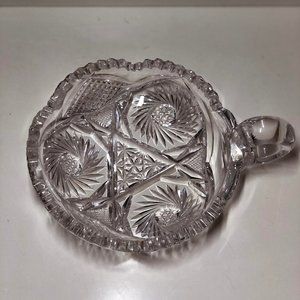 Vintage Crystal Cut Glass Dish w/ finger loop