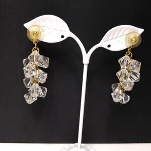 Vintage Crystal Dangling Beads Post Earrings, Gold Tone Chain, 1980s, 2 1/4 In