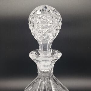 Vintage Crystal Decanter with Stopper Etched Coin Thumb Indents. Bar Barware