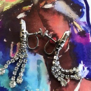 Elegant Vintage Crystal Diamond like silver dangle screw back earrings