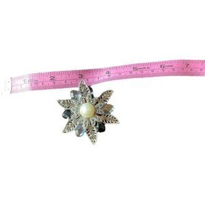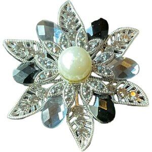Vintage Crystal Flower Brooch Faux Pearl Center Rhinestones