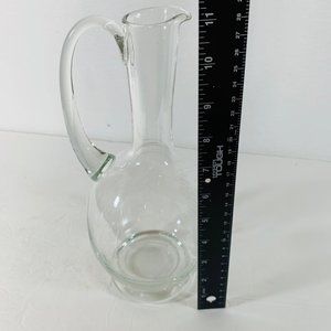 This decanter measures 11" tall, 5 1/8" wide, 5 3/4" across handle side and 1 1/2" opening.