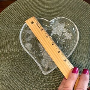 Vintage Crystal Glass Heart Shaped Dish With Design 6 Inch New with Tag in Place