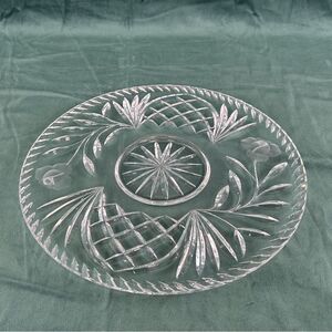 Vintage Crystal Glass Starburst Rose Budd Serving Plate Cheese Plate