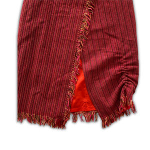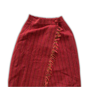 Vintage Crystal Handwoven Women's 2pc Skirt Blazer Set Red Multi Yarn Fringe