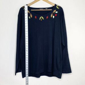 Vintage Crystal Kobe Black Embellished Fall Leaves Tee Long Sleeve Plus Size 2X Cotton Seasonal Teacher Office