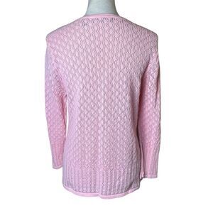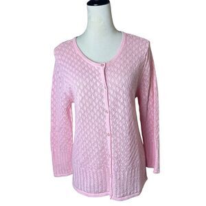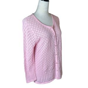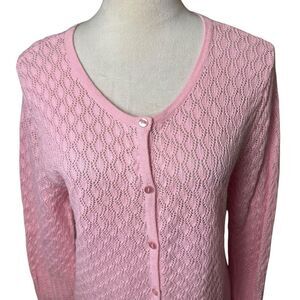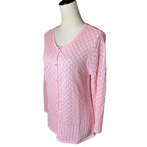 Vintage Crystal Kobe Petal Pink Open Knit Cardigan Size Large Barbie Preppy Y2K