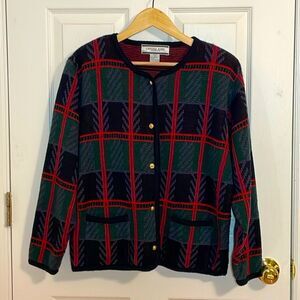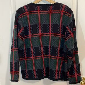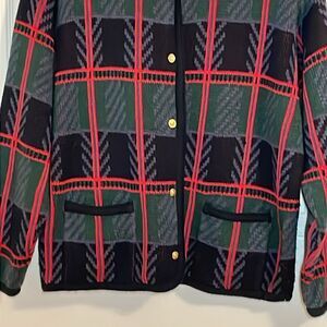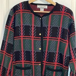 Vintage Crystal Kobe Plaid Christmas Cardigan Sweater, petite Large
