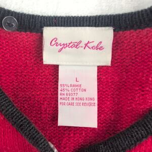 Vintage Crystal Kobe Scottie Dog Whimsical Button Up Knit Cardigan Red / Black Women's Large