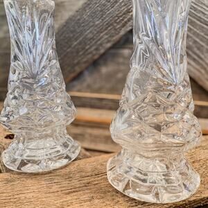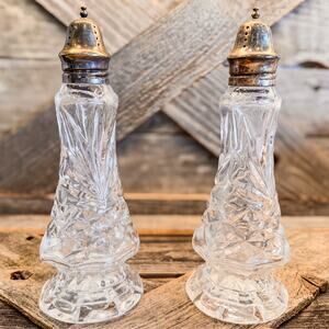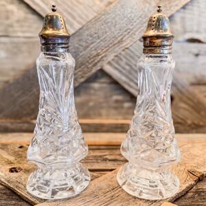 Vintage Crystal Legends Tall Salt & Pepper Set w/ Silver Plated Tops by Godinger