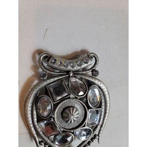 Vintage Crystal Metal Belt Buckle 4" Large Crystals Encrusted Jewelry.
