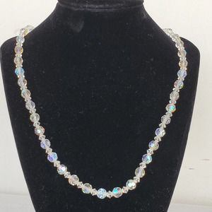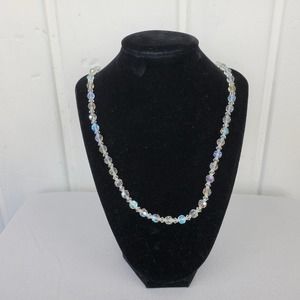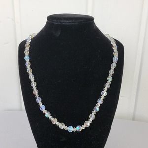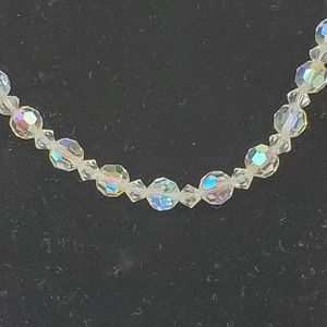 Vintage Crystal Necklace Single Strand Aurora Borealis Fish Hook Clasp