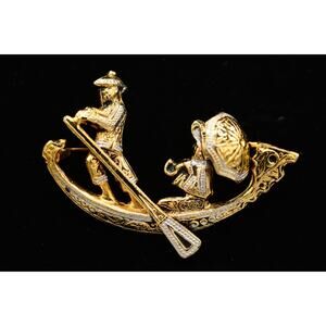 Vintage Crystal Pin Brooch Pearl Prong Cluster Gold Rhinestone Chunky 80s BinAC